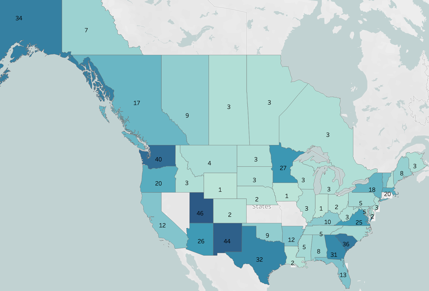 - Provinces visted: 7 (Alberta, British Columbia, Yukon, Saskatchewan, Manitoba, Ontario, New Brunswick)